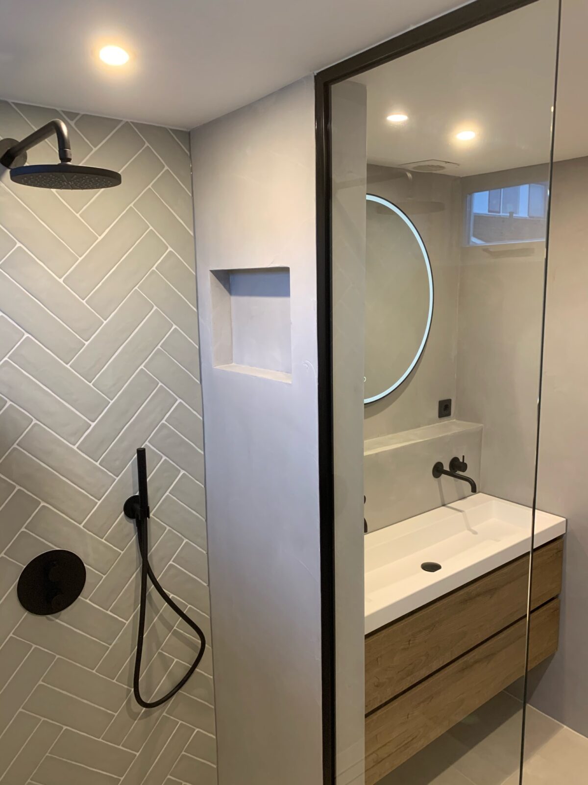 Badkamer renovatie in Weesp met beton cire in de kleur concreto