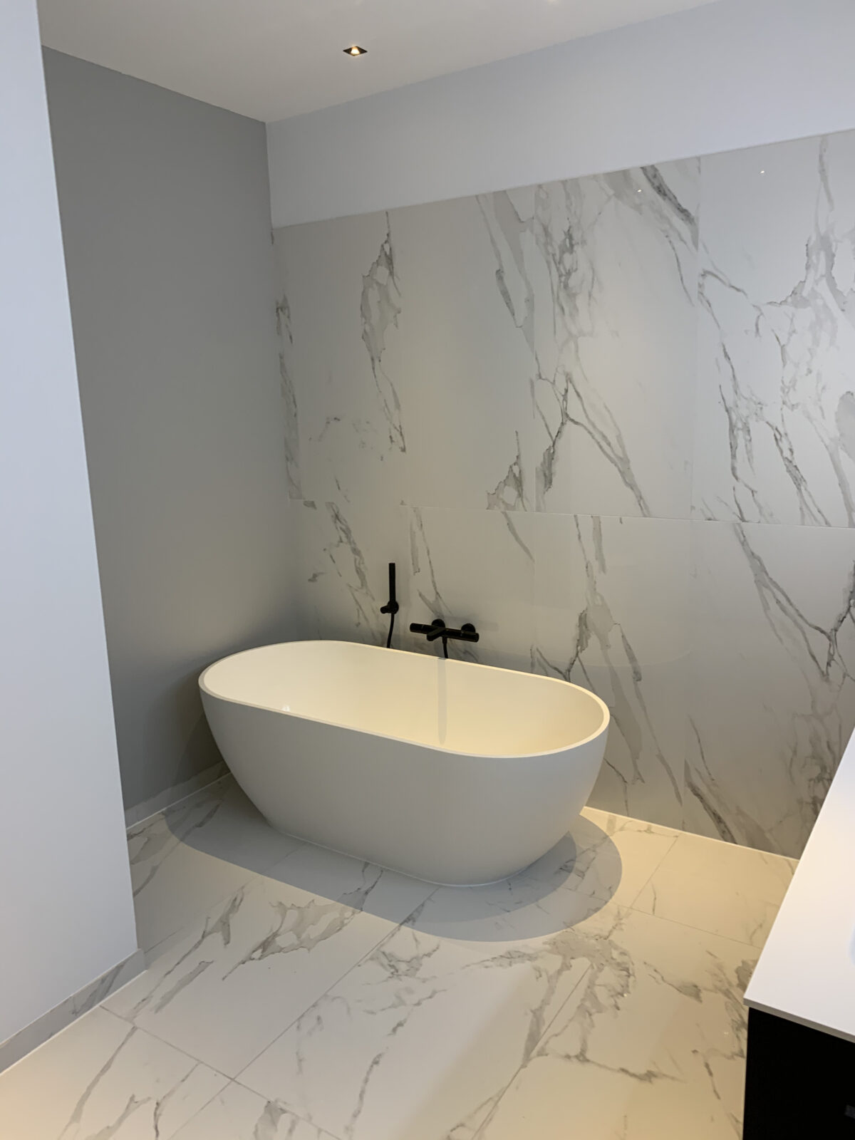 Bij een casco woning in Amstelveen 2 badkamers gerealiseerd.