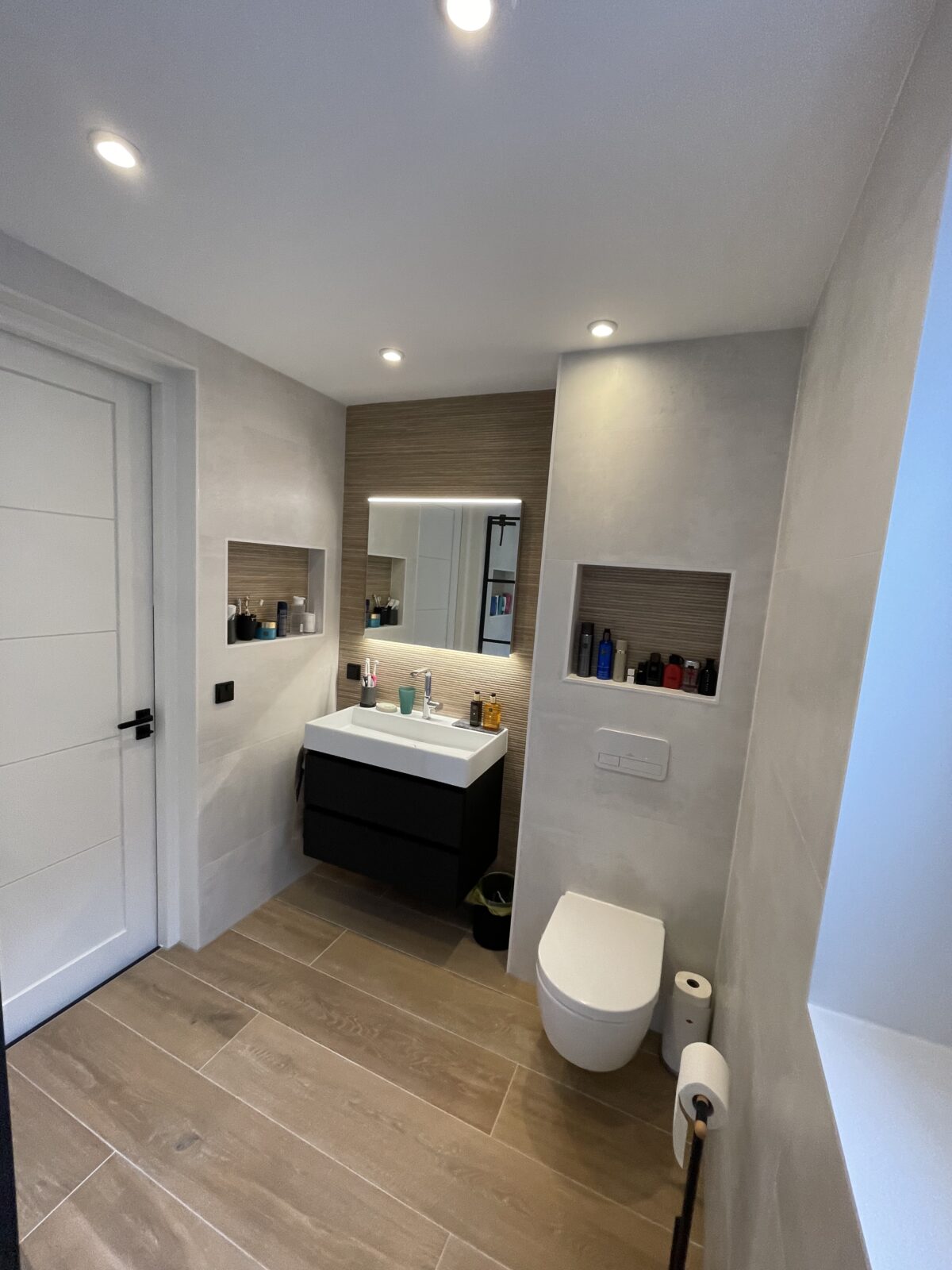 Complete badkamer verbouwing met verplaatsen van deurkozijn met een nieuwe binnendeur.